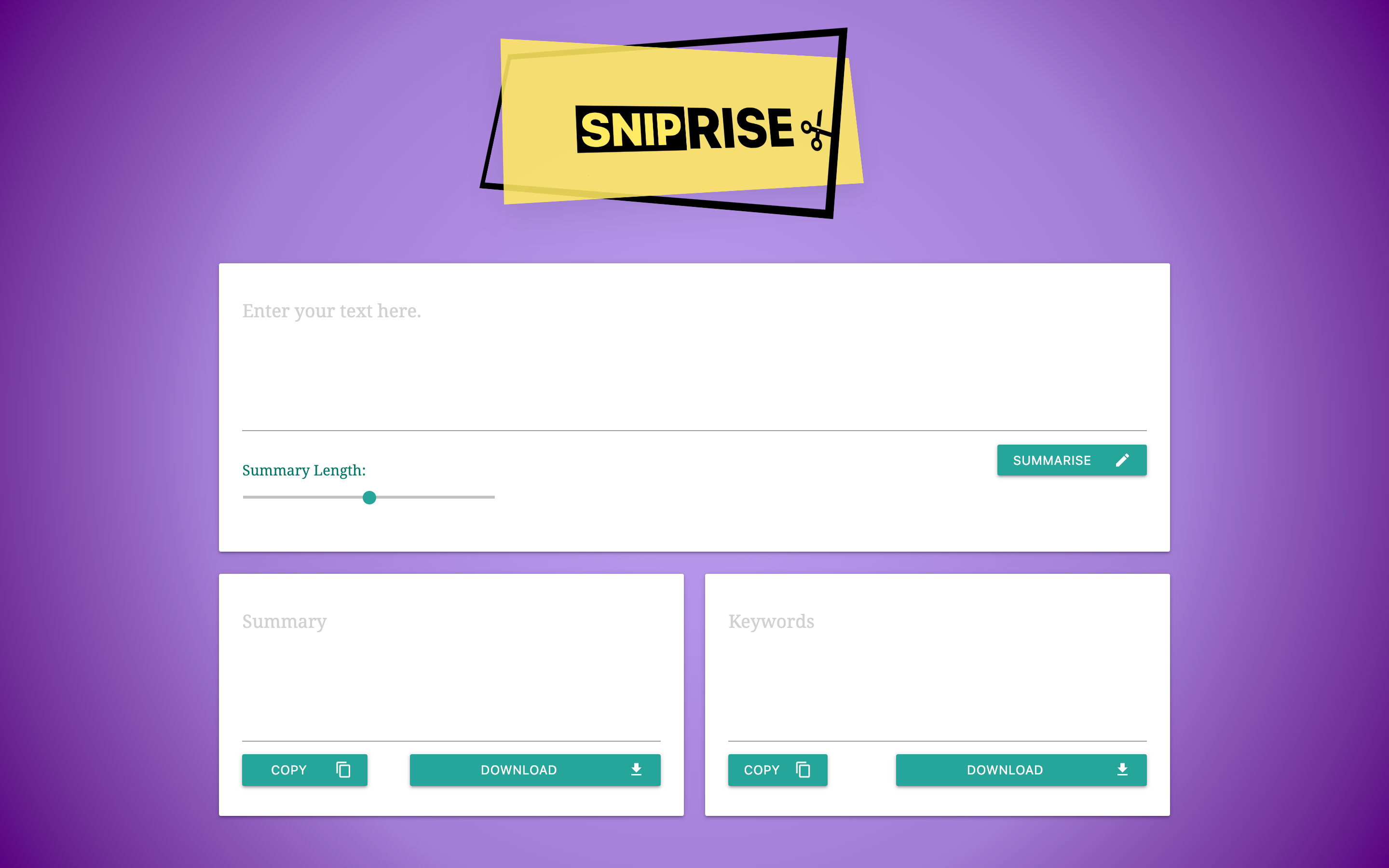 Due to limited time, Piyush and I focused on shortening content through summary generation and keyword identification. We also made the decision to include the following features.