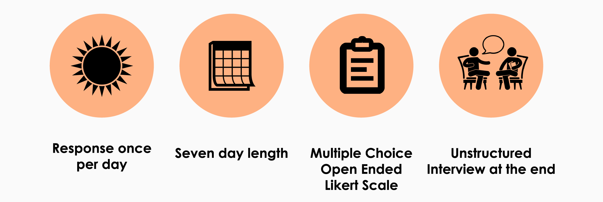 We then decided to conduct a diary study to collect behavioural data from participants. The questions for the diary study were provided to five participants via a Google form that they could complete daily. There was a set of 3 core questions, along with follow-up questions set up using branching methods on the form. Participants were requested to complete the form every evening once they were confident no more purchases would be made for the day. The anonymity of the participants was maintained by assigning participant IDs to each participant.
